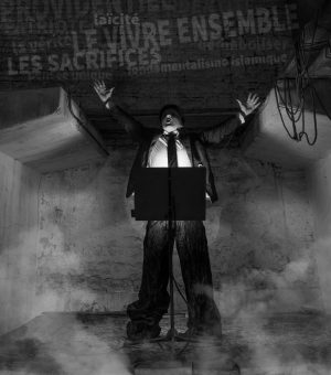 Difficile épreuve démocratique et médiatique… J’avais envie de marquer cette période en reprenant mon masque pour positionner ces images dans la série Hous’Us. Essayer 3…